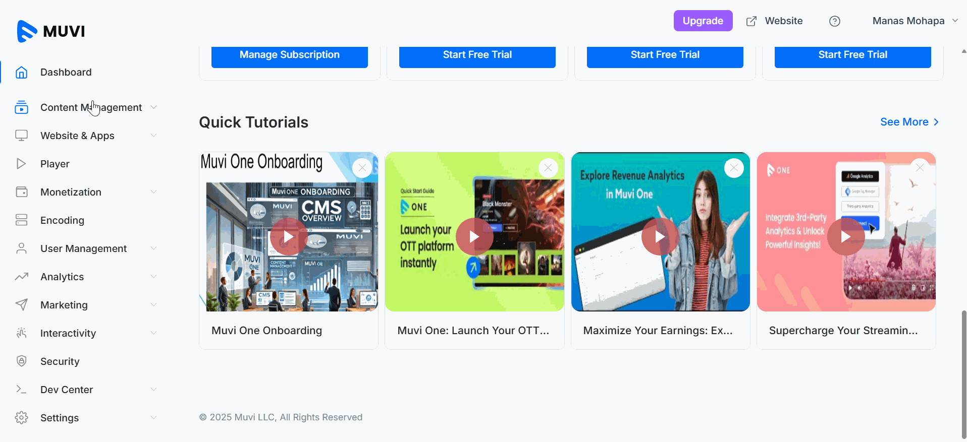 The AI-Recommended Featured Section automatically displays content recommendations generated by Muvi’s AI engine – Alie. This section uses machine learning algorithms to analyze user behavior, preferences, and viewing patterns to suggest personalized content for each user.