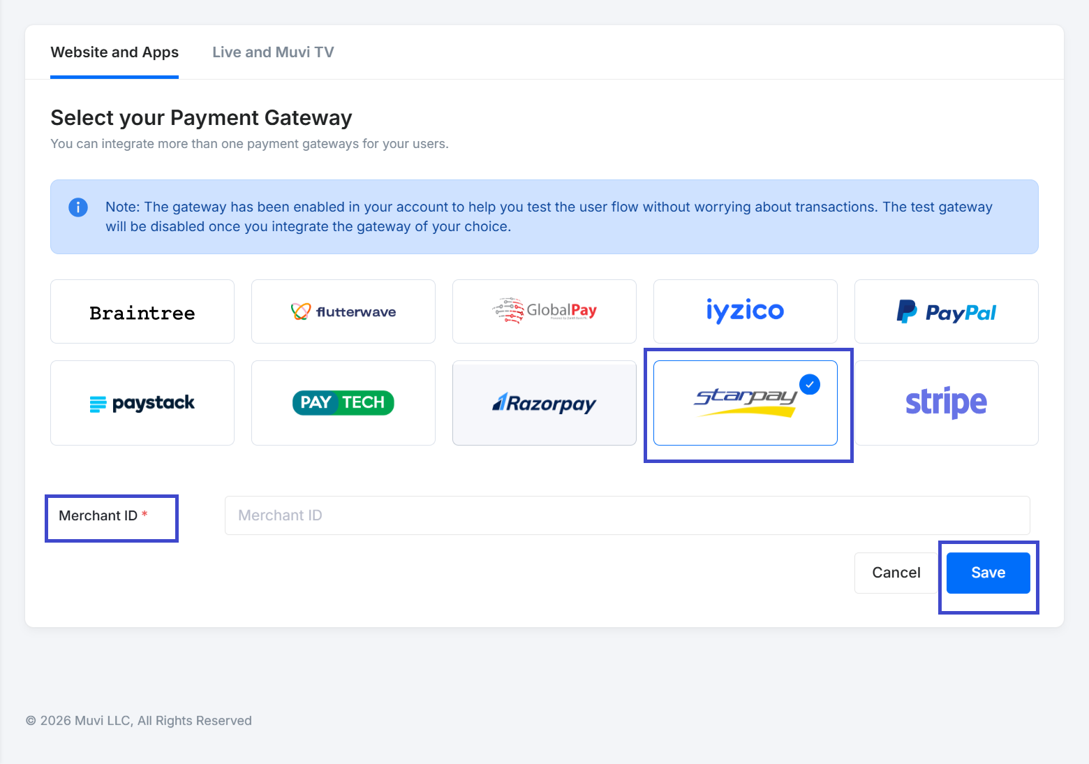 The StarPay Payment Gateway can be integrated with Muvi One directly from the Dashboard. The payment gateway is supported in the Philippines. It is a QR code-based payment that is popular in the Philippines. The payment is done using the StarPay or Instapay mobile app. The end users scan the QR code to make the payment from their StarPay bank account.