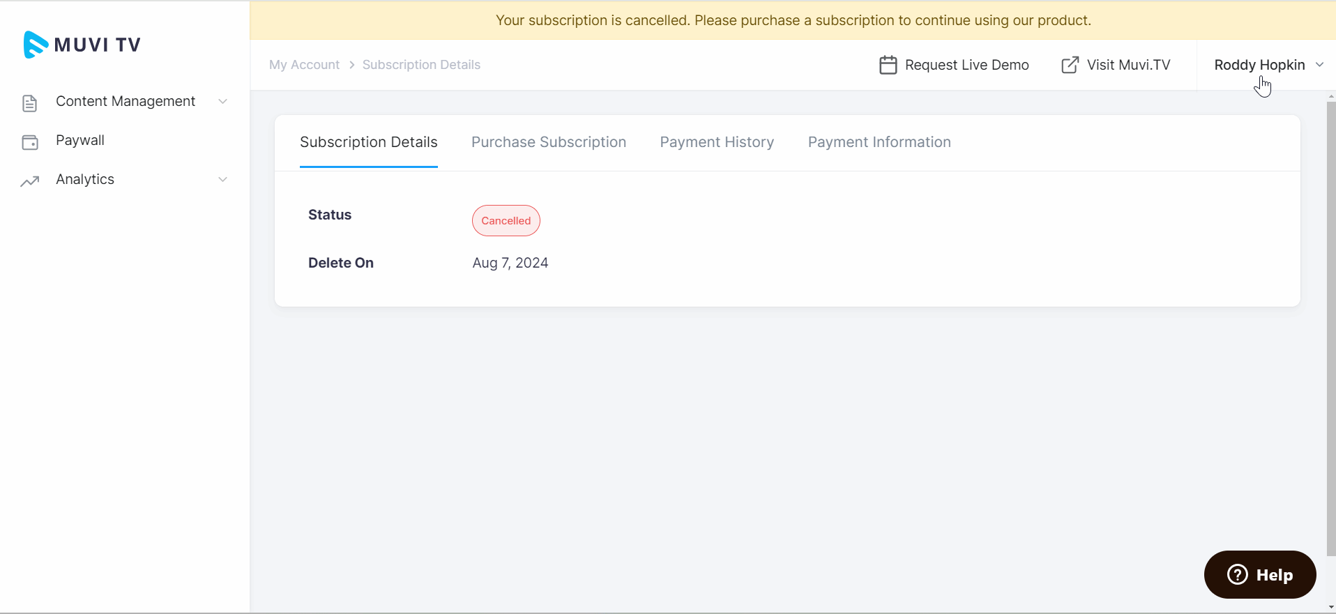 You can re-activate your Muvi TV Subscription from the CMS. You must purchase the subscription again to re-activate your account.
