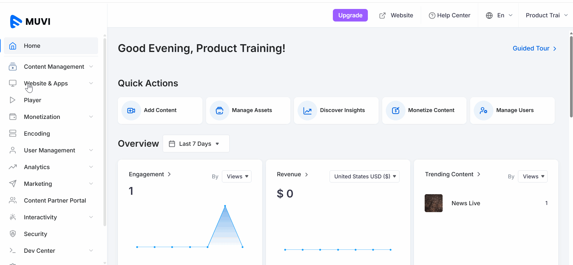 - Once the new user logs into the Dashboard, he/she can manage content, monetization, website templates, apps, and other features in the CMS based on the “Role” assigned to him/her by the store admin (Super Admin).