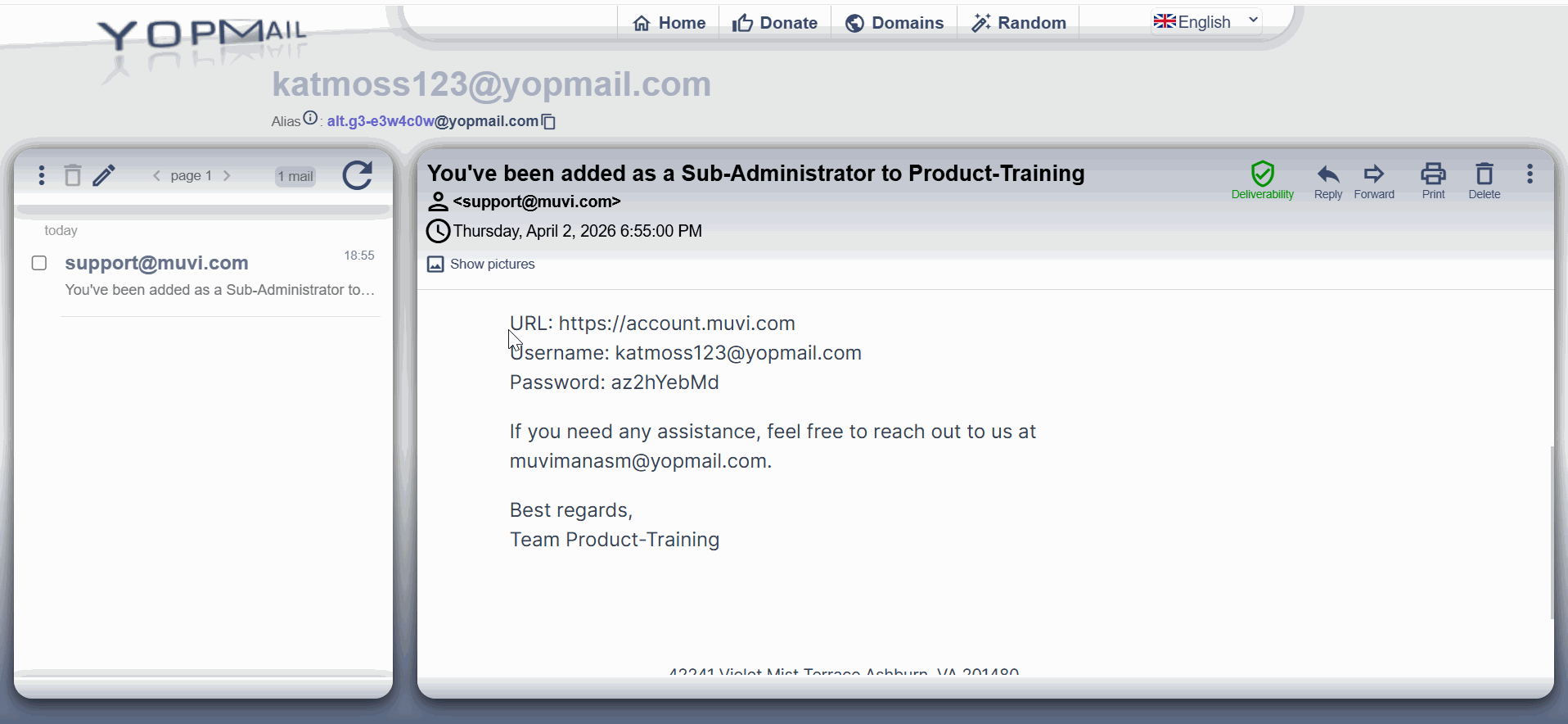 - The new user will receive an email with his/her login credentials.