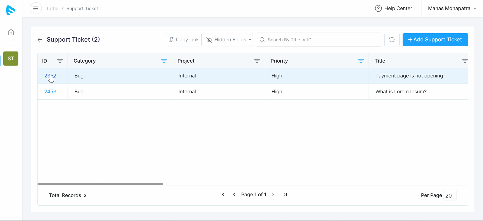 As a user, you can view the support tickets added by you and other users. You can view the list of tickets, ticket IDs, categories, priority, title, description, etc. You can open a specific ticket and view more details of the ticket.
