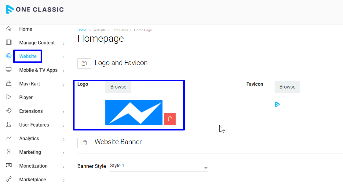 Note: Updating the homepage logo will also change the logo displayed on your website. |