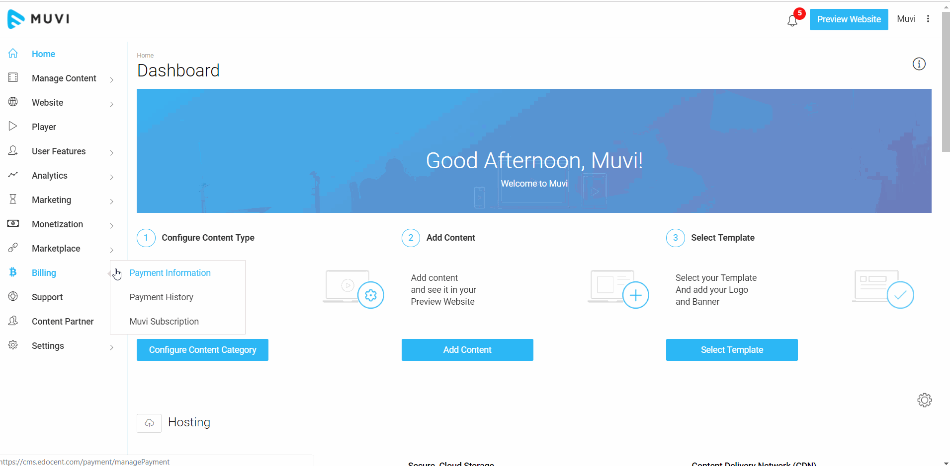 You can change your Muvi subscription at any time you wish through the CMS. However, remember that, you can only upgrade your subscription through the CMS. To downgrade your subscription, you need to inform us. We will do it manually at our end.