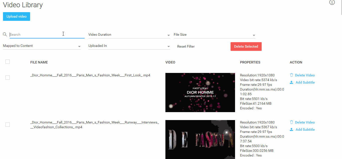 If you have uploaded several number of videos to your video library, then to find certain videos to delete from these can be a daunting task. To make your task simpler, Muvi offers various filtering options through which you can easily filter the videos you want to delete.