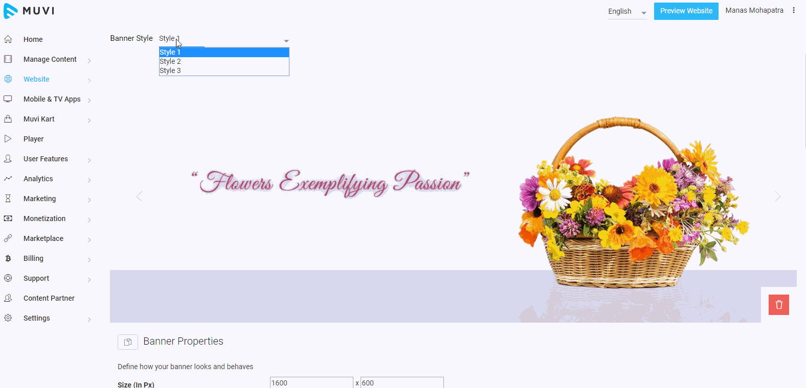 Note: You can change banner style only for Classic, Modern and Traditional Template. Currently, this feature is not available for Physical Only template. Only our new customers can view this feature on their CMS ("Website"-->"Template"-->"Home Page"). Our existing customers need to add a support ticket to avail this feature.