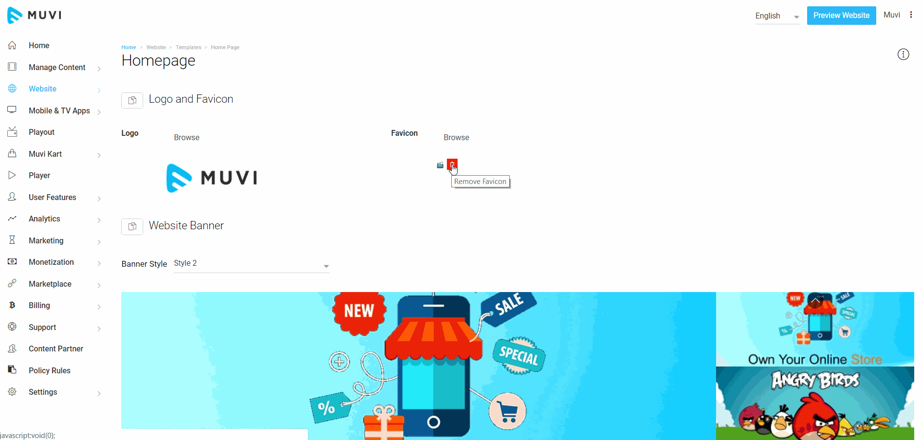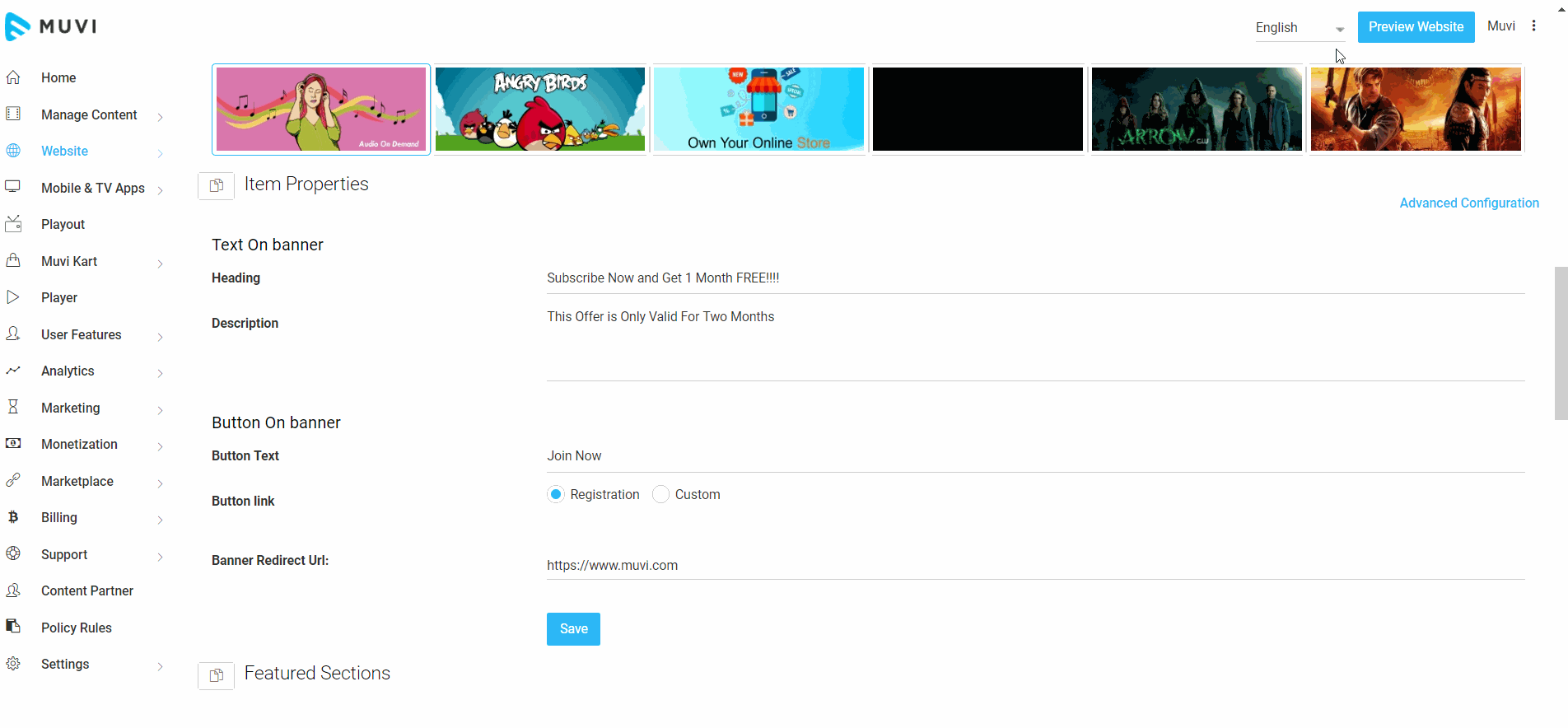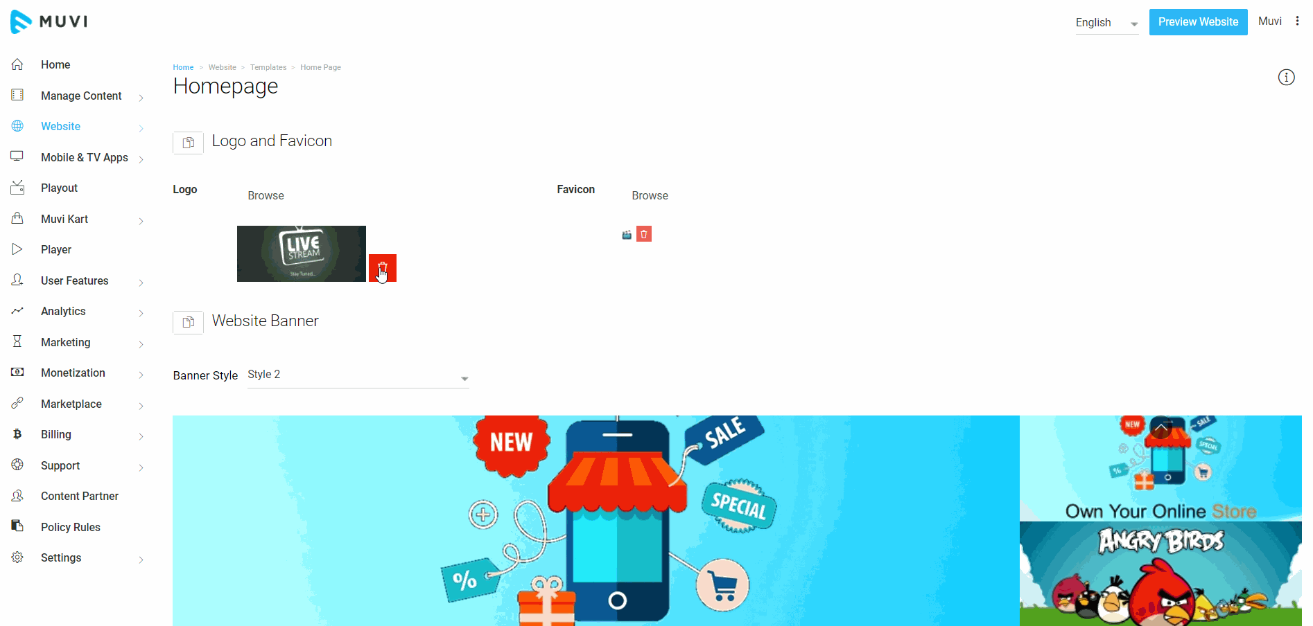 Homepage is the most important aspect of your website. You need to make it more appealing to attract more users towards your website. You can easily customize your homepage by using various customizing options available in your CMS to make it more attractive. You can add Logo, Favicon, Banner etc. In the featured section, you can display your content in different categories. For instance, you can add sections like, New Releases, Most Viewed, Coming Soon etc.