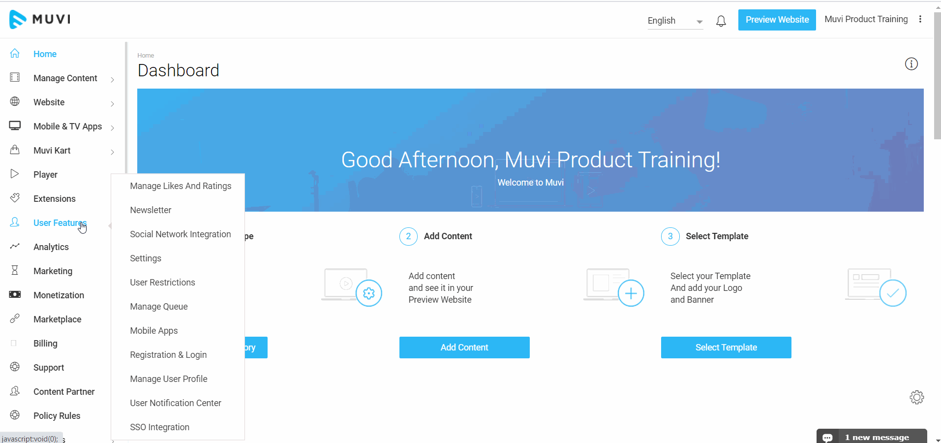 User Notification Center in the CMS allows you to send notification to your users. You can send notification (text messages) about your store to your users which may include notification about change of pricing in your store, addition of new content or any other information. When the users login to your store, they will see the notification on the top-right corner. Users need to click on the notification icon to view the notification. They can also delete the notifications after reading them.