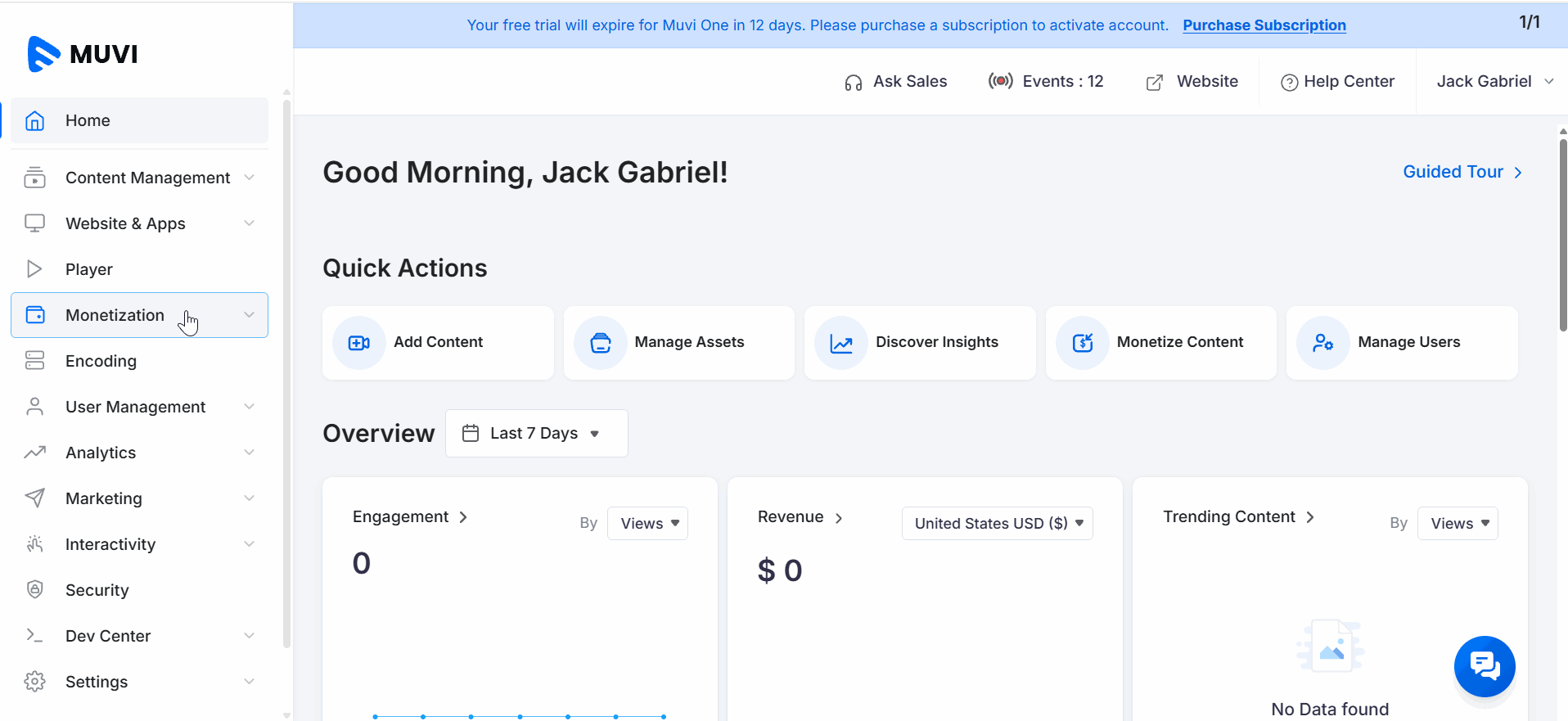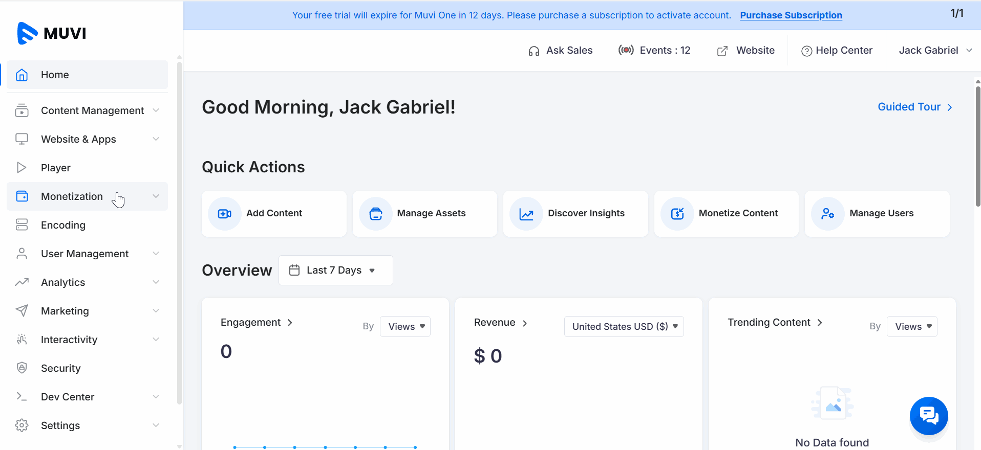 - To enable Subscription, navigate to “Monetization” -->“Settings” in the Dashboard.
